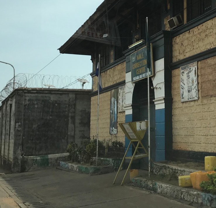 Before we could go to the correctional facility, we went to the correctional system headquarters to get a pass to visit. We were with some Ministry of Health staff. Our names were handwritten on a piece of paper and stamped. Actually it was 2 pieces of paper with a carbon copy sheet between. It was also logged into a big book. No signature or ID required. This all took awhile.
