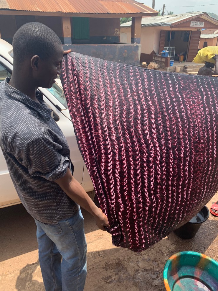I bought some more gara cloth at the market including some with the traditional kola nut dye. It’s the chestnut brown cloth on top.