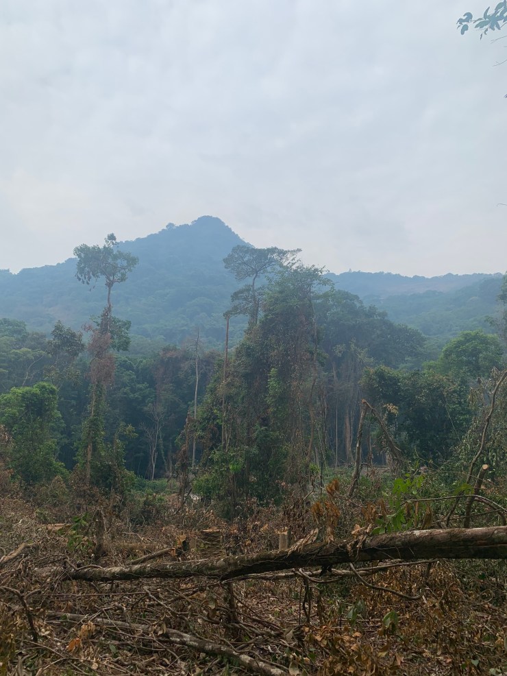 Although there was some burning to clear for planting, there were still some large trees and dense forest. Fortunately, it was a cloudy day so not as hot as it could have been.
