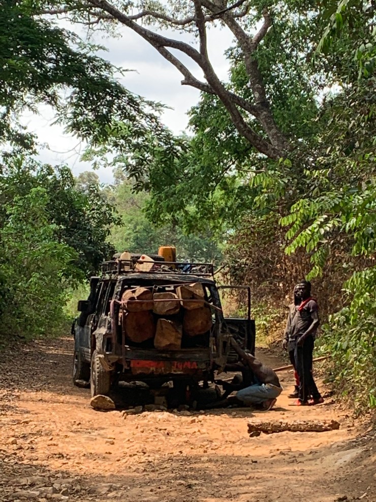 The other source of income was timber. While we were there, we were surprised to see a SUV zoom through the village. We have been parking at the bottom of a supposedly impassable hill. It was a timber truck going through to collect logs. Later I heard the driver was smoking with one hand and swigging rum with the other. These guys really live on the edge. Below is a previous picture of a typical timber truck – doors and windows removed.